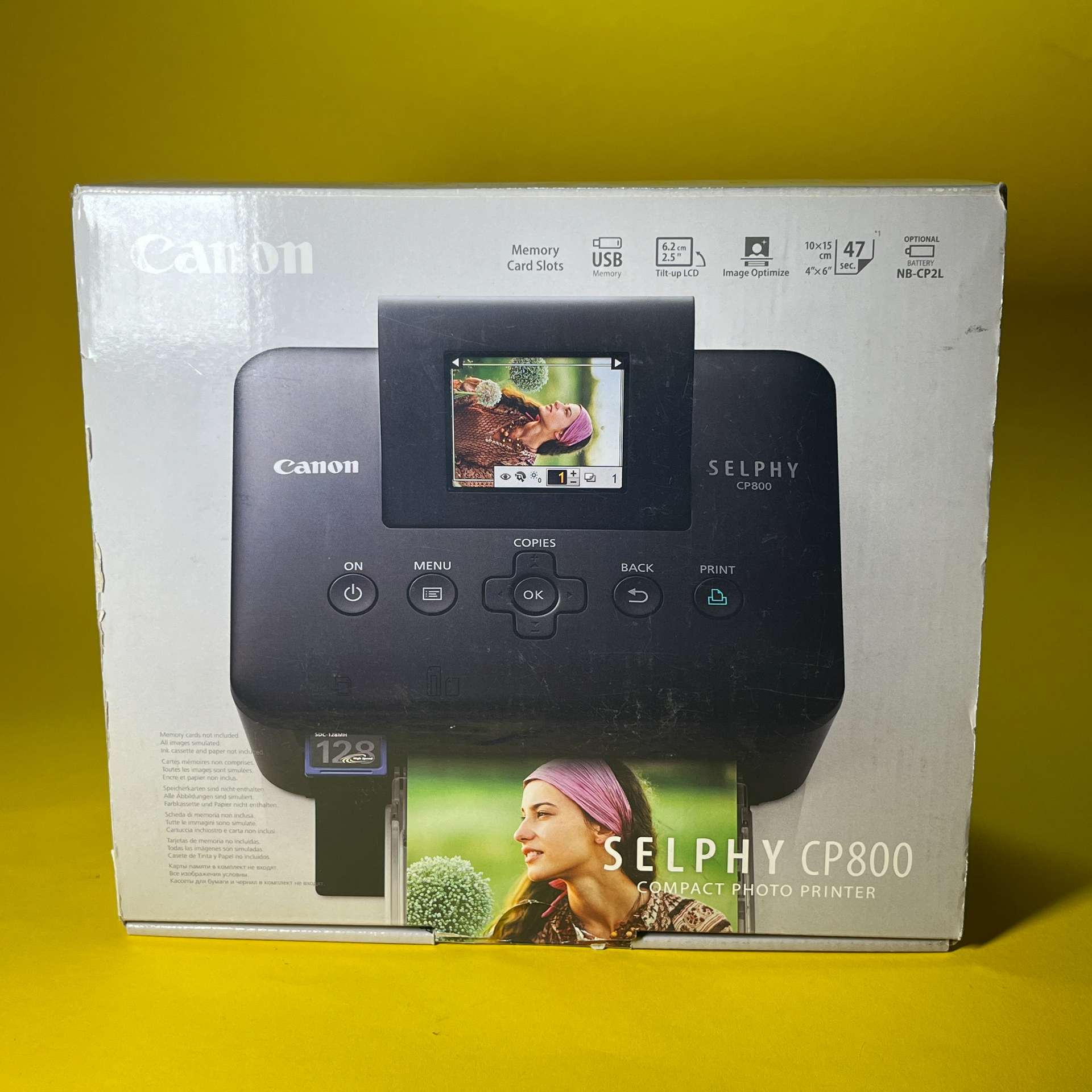 Tiskárna SELPHY CP800 je schopná tisknout formáty velikosti pohlednice (148 × 100 mm), formát L (119 × 89 mm) a formát kreditní karty (86 × 54 mm) za neuvěřitelně krátkou dobu.