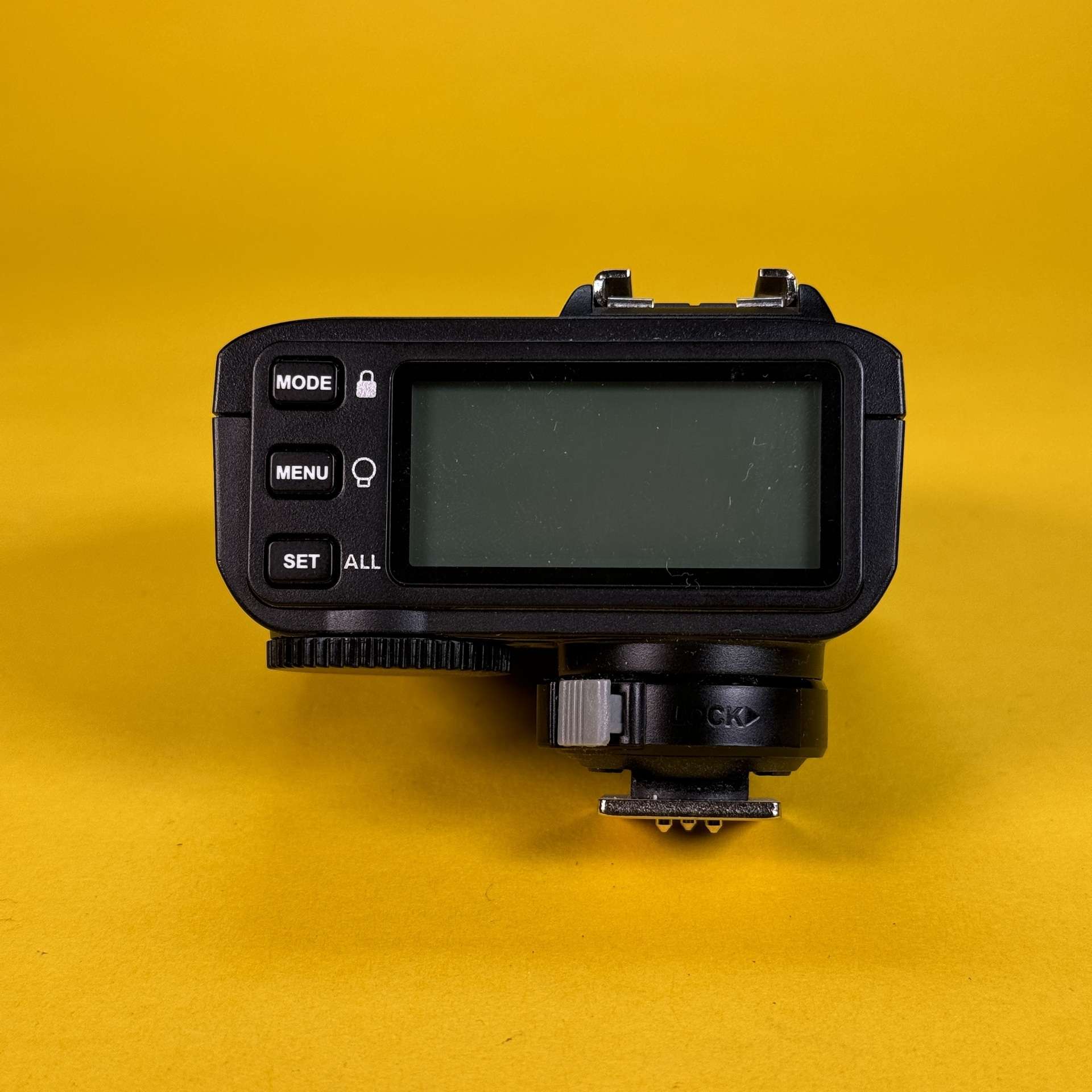 - Průchozí sáňky pro blesk – na vysílači může být připojen další externí blesk.