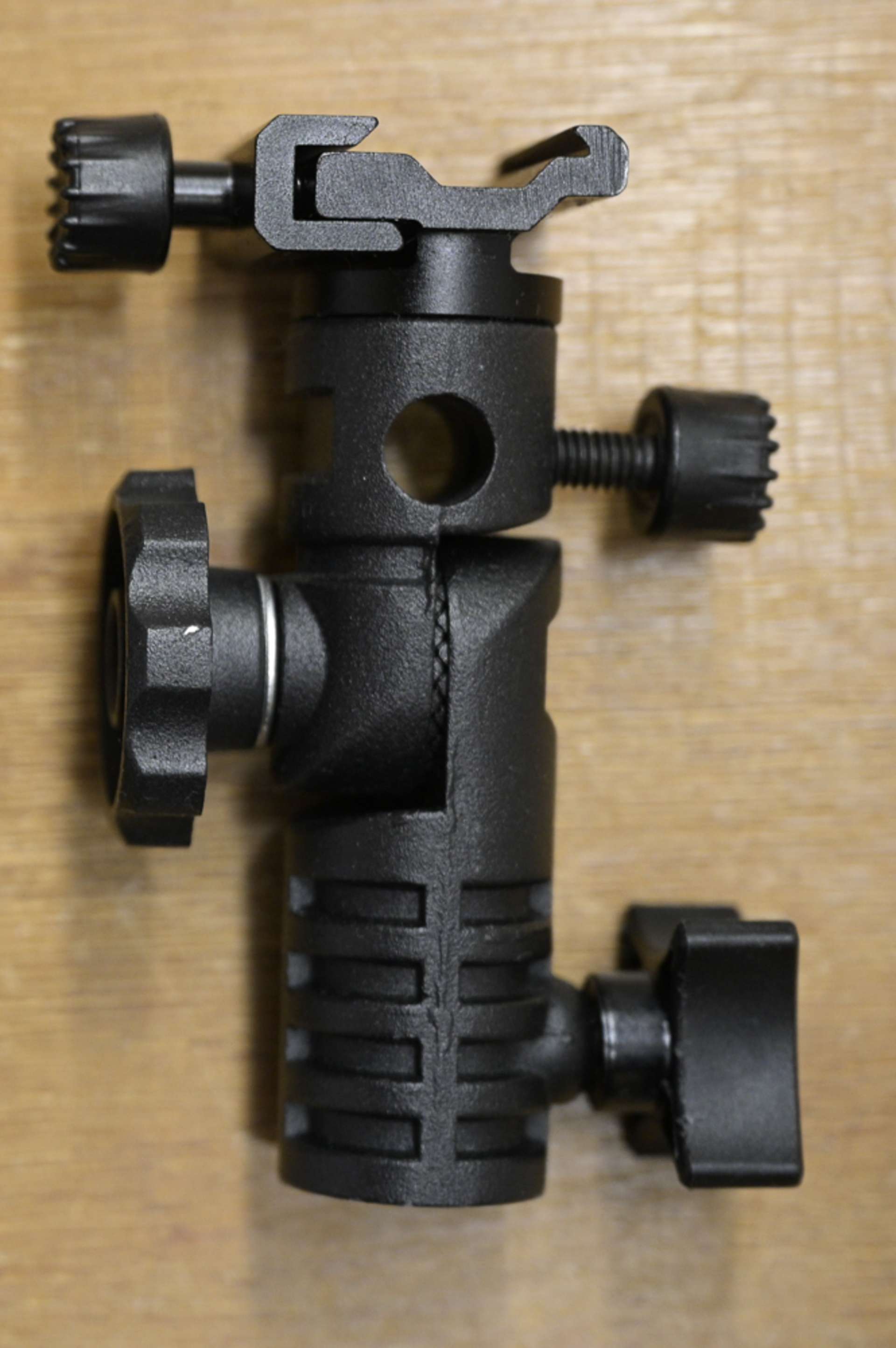 Kolejnice pro instalaci libovolného externího blesku Naklápěcí hlava Vhodné pro deštníky do průměru 1,2 m s tyčí o průměru do 8 mm