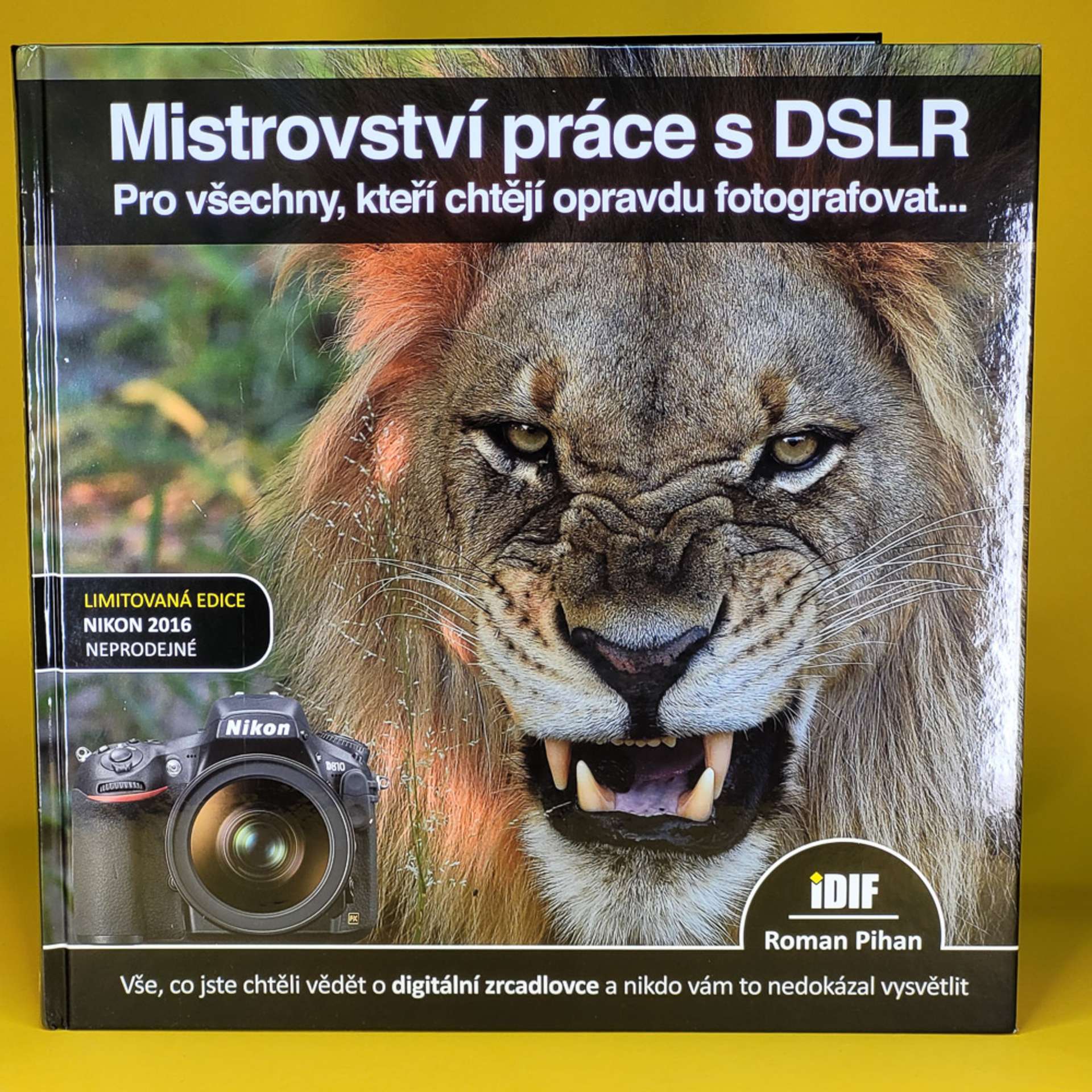 Limitovaná edice Nikon 2016. Kniha Mistrovství práce s DSLR jako první nabízí opravdu vyčerpávající odpovědi na všechny vaše otázky týkající se práce s DSLR. Jde o původní českou publikaci, na které tým lektorů IDIFu pracoval skoro rok. Autorem textu je Roman Pihan, který se problematice práce s DSLR věnuje soustavně již přes pět let. Začtěte se do této unikátní knihy a najděte odpovědi na své otázky.Kniha je napsána sice velice odborně, ale Roman Pihan tyto termíny vždy vysvětlí velice přesně, jasně a srozumitelně. Proto se člověk nemusí bát, že by něco nepochopil. Jeho jazyk je ale spíše odbornější. Sám Roman Pihan o ní mluví jako o knize, která má seznámit uživatele s provozem zrcadlovky, jejím pochopením a samozřejmě bezchybnou obsluhou. Na tuto publikaci navazuje Mistrovství práce se světlem, kde naopak rozebírá taje světla, tonalitu barev a bere na zřetel jeho zpracování.