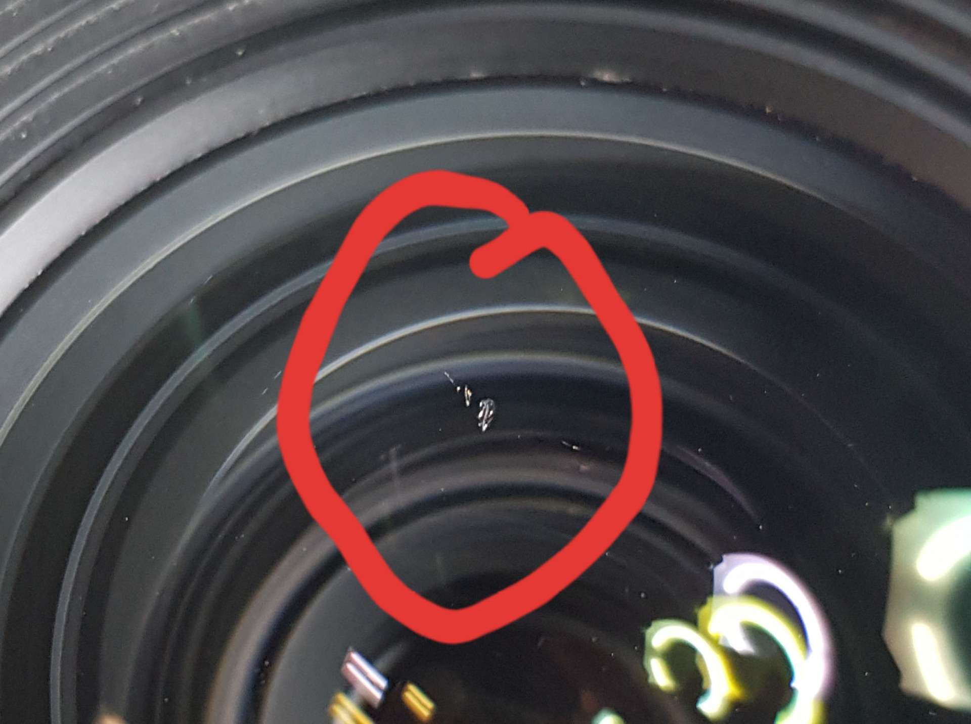 hlubší škrábanec na přední čočce