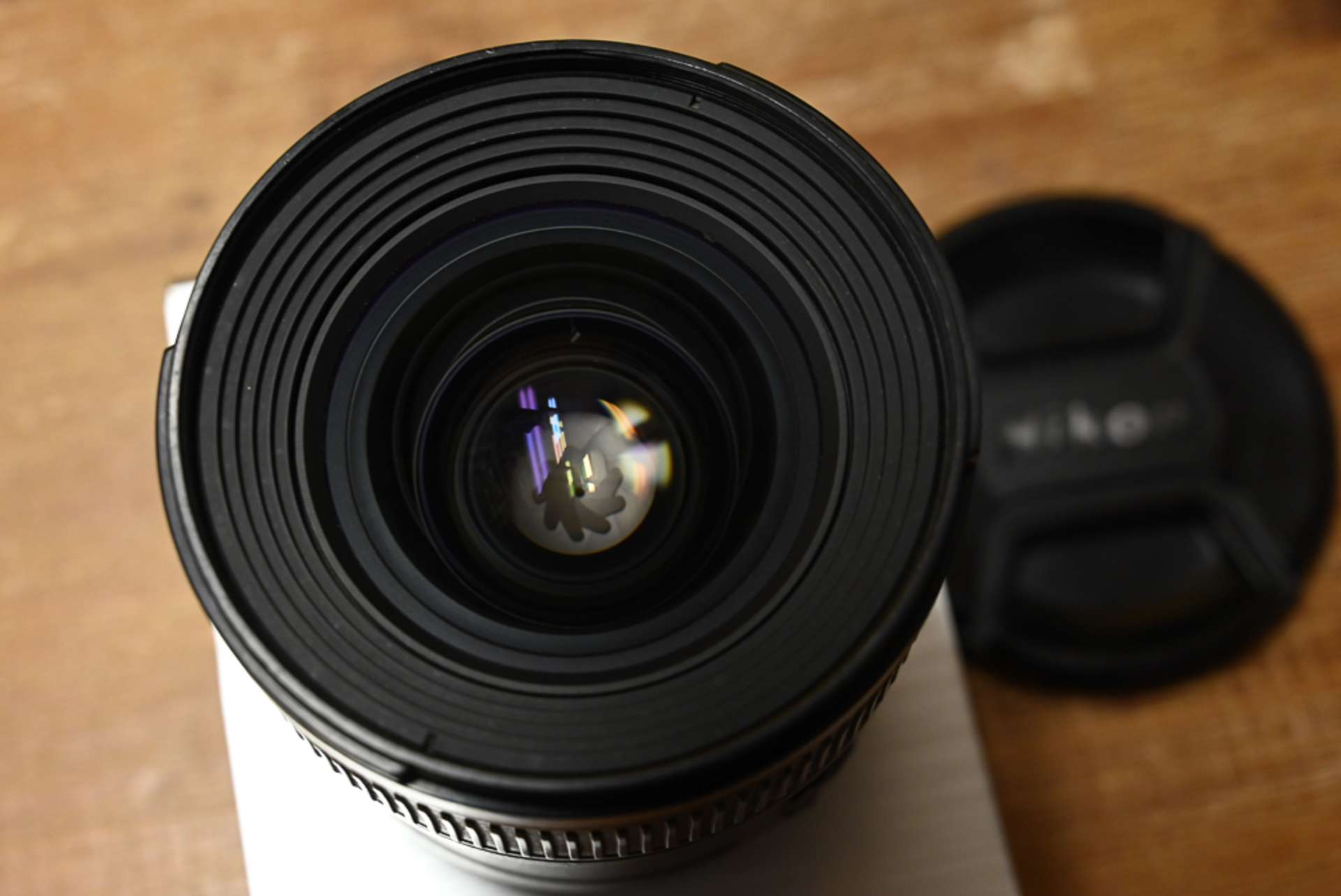 nese známky používání. Na přední čočce cca 2 mm škrábanec ve skle a drobnější škrábance v antireflexní vrstvě. Na fotkách není vidět, může způsobit odlesk při focení do protisvětla.