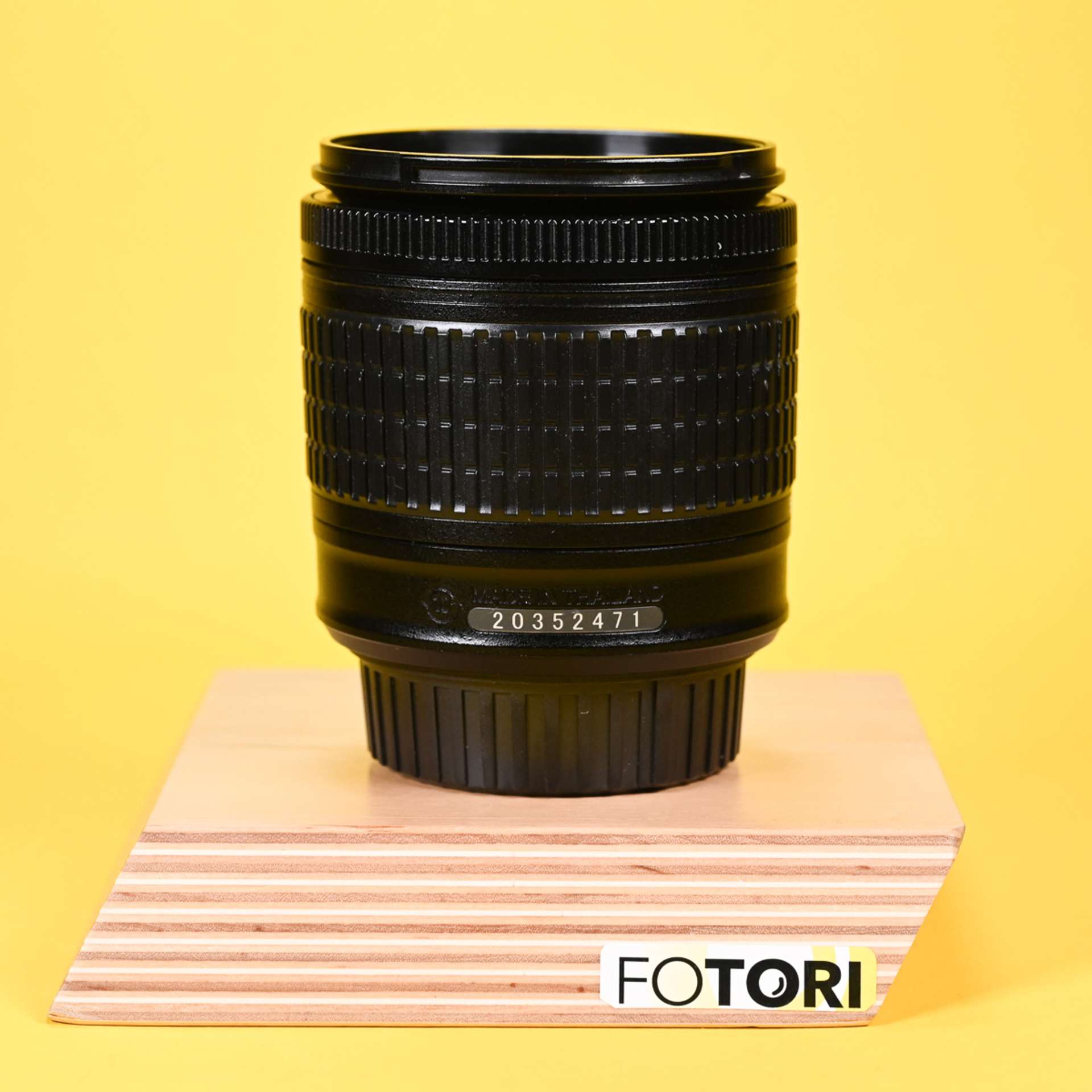 Kompaktní zoomový objektiv Nikon AF-P DX Nikkor 18–55 mm f/3,5–5,6G VR s 3,1× optickým přiblížením pokrývajícím ohniskové vzdálenosti odpovídajícím 27–82,5 mm kinofilmu. Jedná se o první AF-P objektivy pro formát DX s využitím krokového motoru pro tiché a rychlé AF zaostřování. V optické soustavě jsou zahrnuty dva asférické členy, které podávají vynikající optický výkon a potlačují aberace, včetně zkreslení a sférické aberace. Objektiv je též vybaven účinnou stabilizací obrazu, která kompenzuje 4 EV kroky.