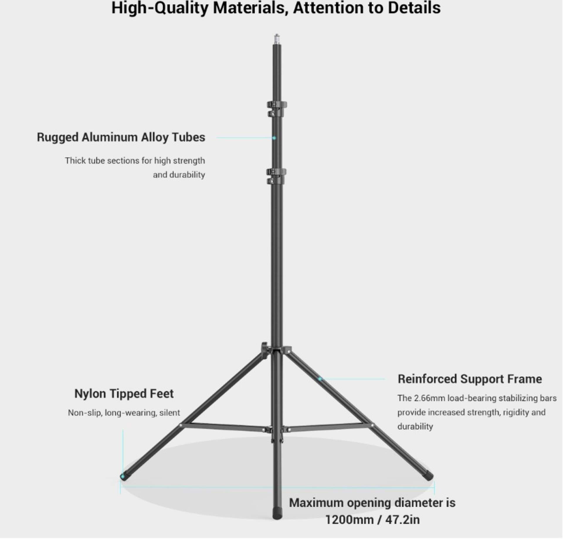 RA-S280 je profesionální stojan na světla s vzduchovým odpružením, který chrání zařízení a prsty před náhodným pádem. Díky nastavitelné výšce od 94 cm do 280 cm je vhodný pro širokou škálu scénářů, od portrétní fotografie až po živé vysílání.