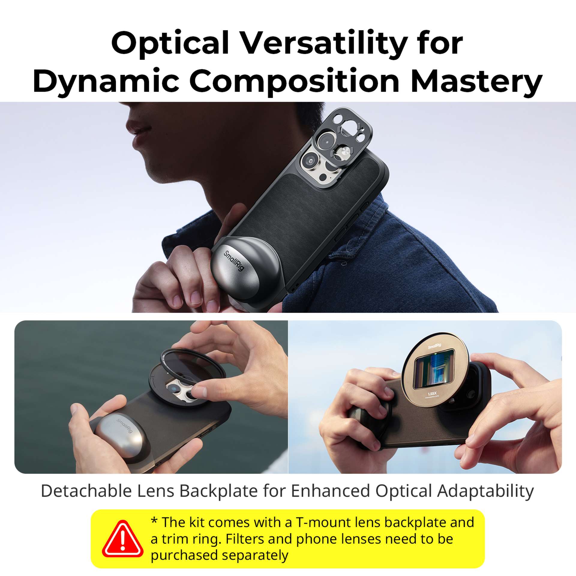 SmallRig 4987 FilMov Lightweight Photography Case Kit je elegantní a funkční sada pro iPhone 16 Pro Max, ideální pro tvůrce mobilního obsahu. Pouzdro je vyrobeno z vysoce kvalitní kůže a poskytuje ochranu telefonu s kompatibilitou MagSafe. Ergonomická rukojeť CapGrip zlepšuje uchopení a umožňuje snadné ovládání tlačítka Capture. Rychloupínací zadní deska objektivu podporuje instalaci T-mount objektivů, 67mm filtrů nebo 17mm závitových adaptérů, což zvyšuje kompatibilitu s optickým příslušenstvím. Pouzdro je lehké, odolné a nabízí vynikající ochranu proti nárazům. Tato sada kombinuje styl, praktičnost a rozšiřitelnost pro profesionální natáčení.