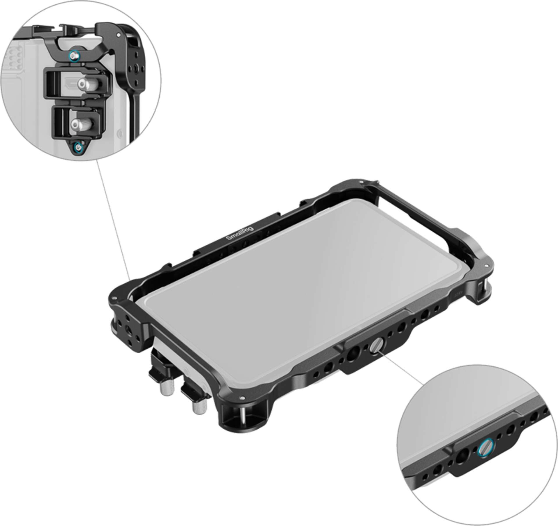 SmallRig Monitor Cage Kit 5030 je speciálně navržen pro Atomos Shinobi II, poskytuje spolehlivou ochranu monitoru, více možností upevnění příslušenství a vylepšené sledování v jasném prostředí díky přiložené sluneční cloně. Tento kit zahrnuje klec, sluneční clonu VH2269 a tvrzený skleněný chránič obrazovky pro zvýšenou ochranu.