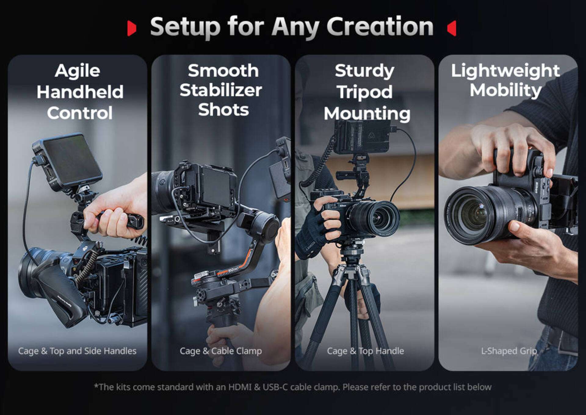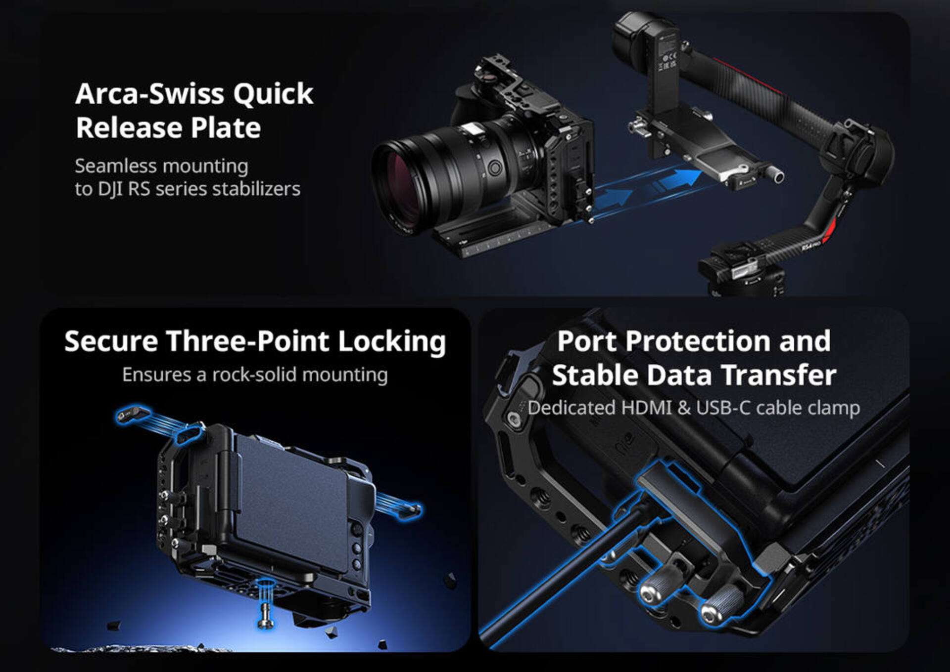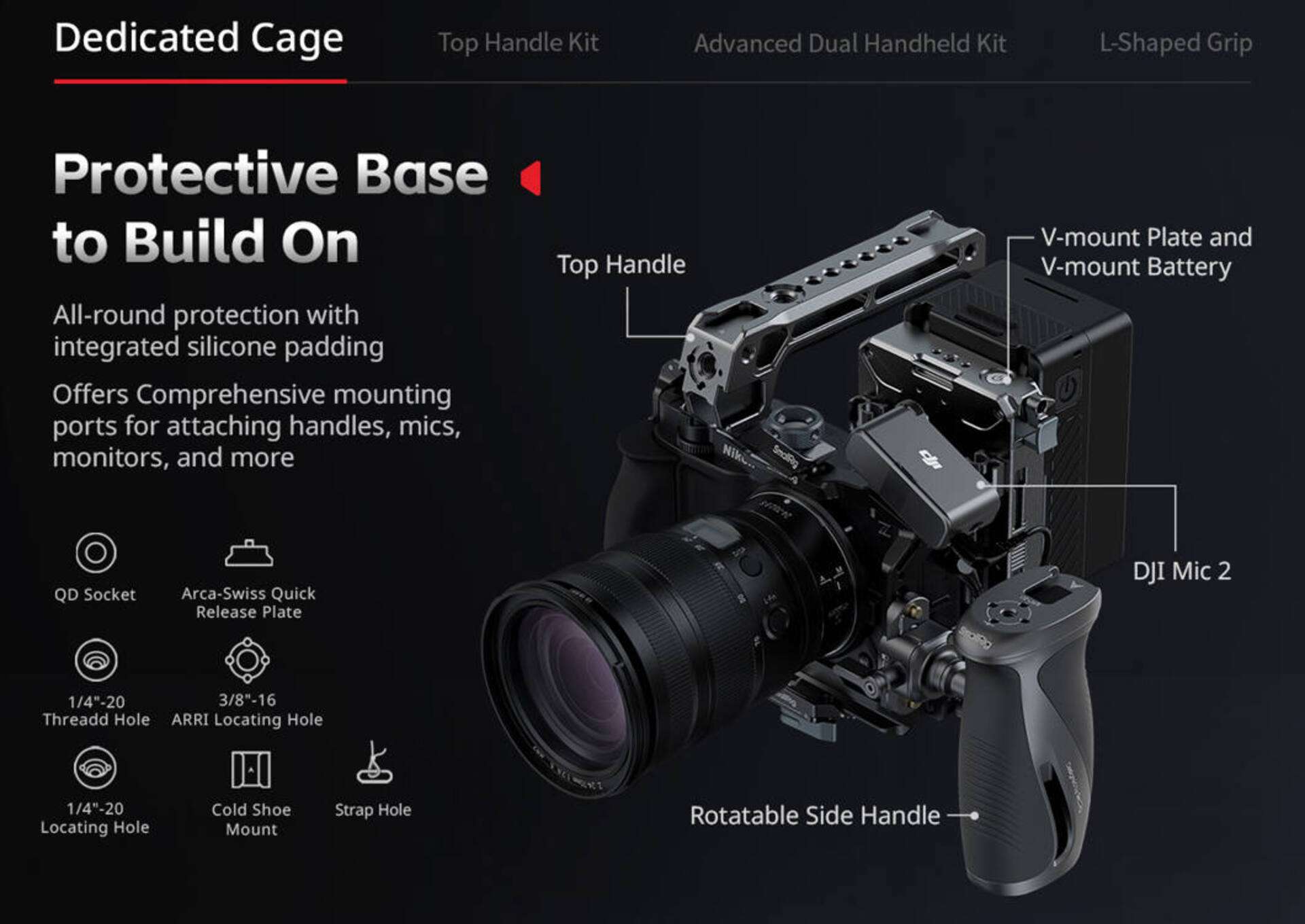 Profesionální klec SmallRig 5467 poskytuje komplexní ochranu pro váš fotoaparát Nikon ZR a zároveň nabízí rozsáhlé možnosti rozšíření. Díky promyšlené konstrukci s trojbodovým uzamykacím systémem a dvojitými bočními bloky je kamera stabilní a bezpečně fixována. Integrovaná destička Arca‑Swiss umožňuje rychlé přepnutí mezi stativem, gimbalem či jinými držáky. Klec je vybavena řadou závitových otvorů, držáků cold shoe a praktickým magnetickým klíčem pro rychlou montáž i demontáž.